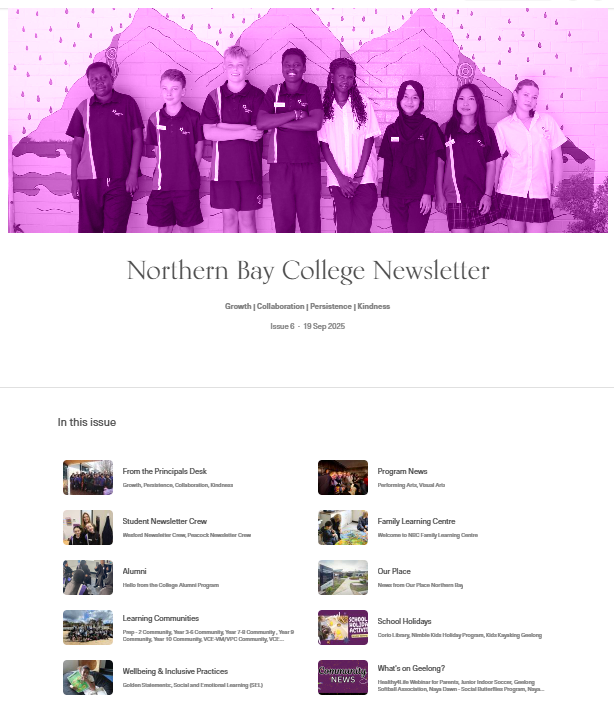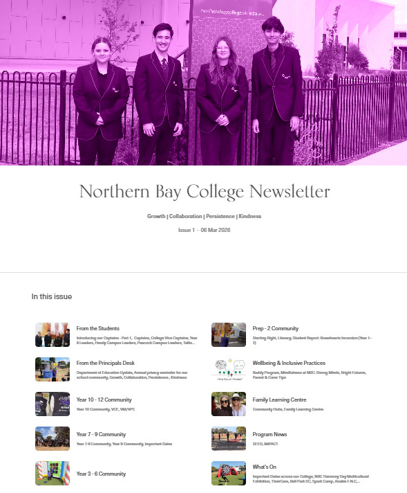 The College newsletter is published approximately in Weeks 5 and 9 of each term. It is an extensive newsletter divided into learning communities and is easy to access regardless of your child's age.
